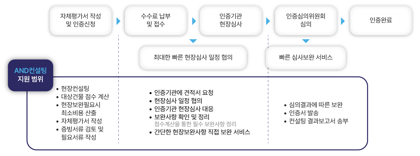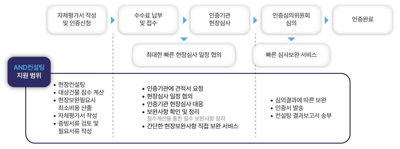 *AND컨설팅은 인증신청부터 인증완료시까지 인증전체 사항을 책임지며,